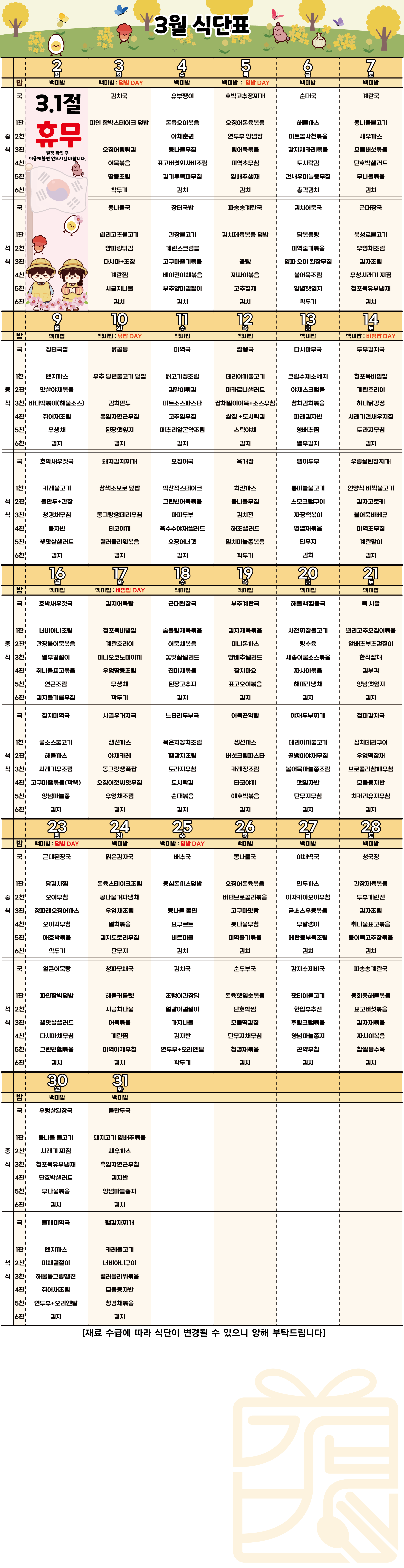 3월 식단표